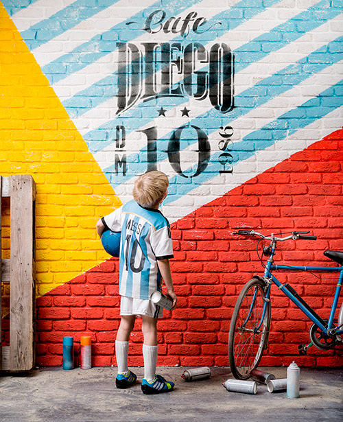 一个以足球明星为灵感的咖啡馆品牌形象设计,五彩缤纷的阿根廷街头,建筑和街头艺术,融合到该品牌设计风格中并将著名球星肖像绘制到品牌形象和包装设计中。品牌的精髓主要体现在品牌认同的媒介上,带有黑白色彩的元素。咖啡包装设计也与品牌形象一制。下面就是这个咖啡馆整体的形象设计和咖啡馆vi设计。