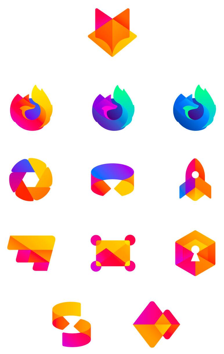 第一个系统强调厚厚的几何图形和强烈的黄色到红色的调色板,尽管颜色有一些变化。在这两款浏览器中,这几乎让人感觉更像是“经典火狐”。