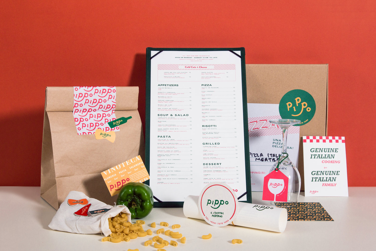 皮波位于雅加达,是一家中上阶层的意大利咖啡馆,为那些渴望真正美味的意大利美食的人提供精美的菜肴,包括比萨饼和意大利面食。我们设计它的品牌时考虑到了某些特点:简单而温暖。这个标志是从一个孩子的脸上衍生出来的,因为他渴望地看着一个西红柿,这是一种几乎是标志性的成分,因为它在意大利菜中被广泛使用。红色调也代表番茄,绿色代表新鲜蔬菜,这在意大利食品中非常突出。此外,黄色配色方案补充了红色和绿色,也增强了品牌的温暖氛围。“
