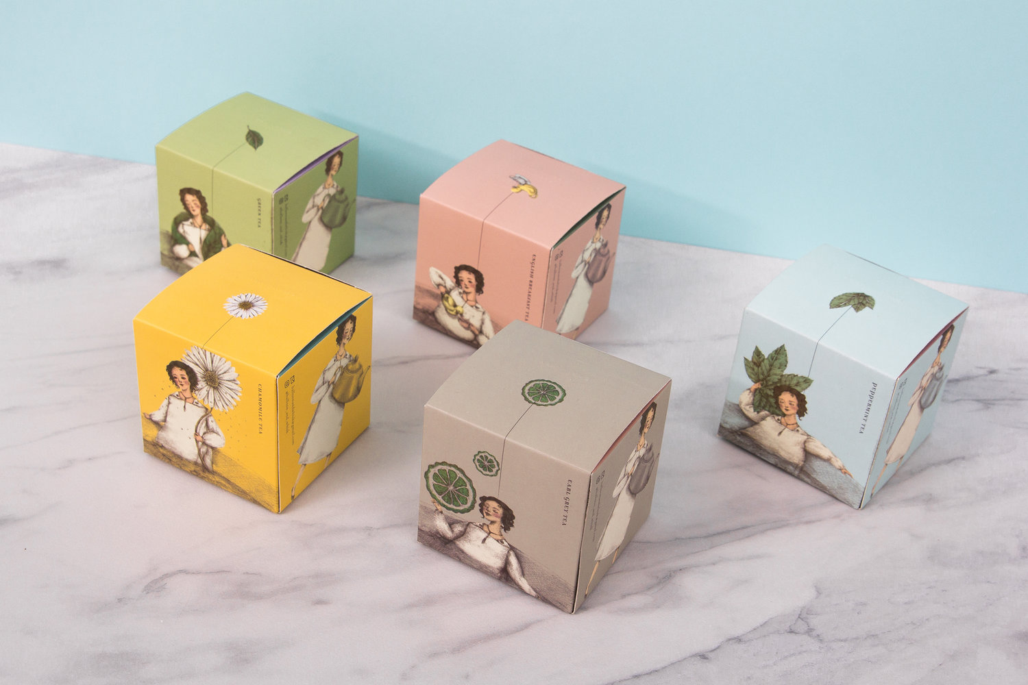 品牌围绕着“光”或“空气”主题,这是“气球”和“风铃”共同的主题。气球含有空气,而搅拌器是用来将空气混合在混合物中的炊具。“轻”的主题在插图中也很突出,每个人物都代表着不同的味道和美味。