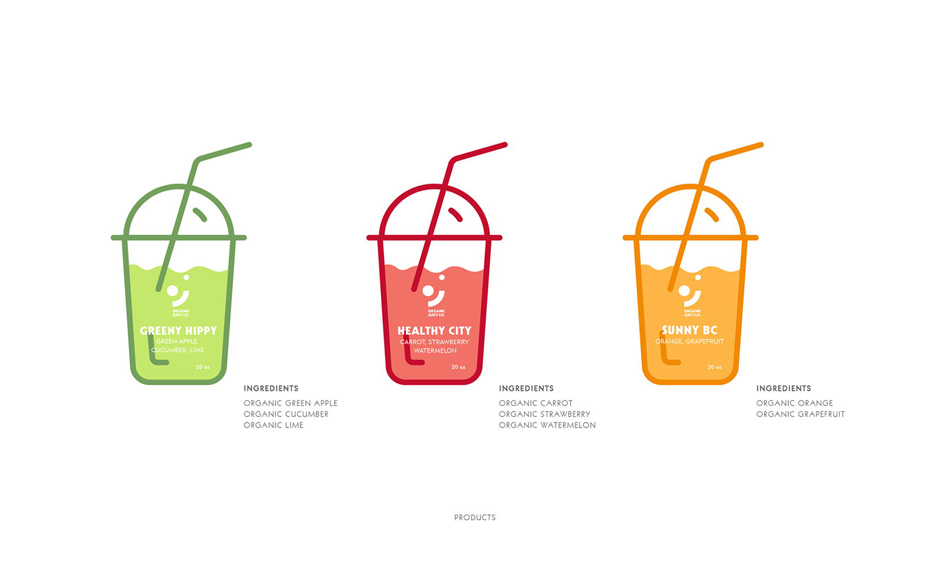 一家压榨果汁公司VI设计,公司在夏季生产来自8种水果口味的3种不同果汁。品牌标志设计是使用具有数学公式x,z和y的坐标系设计的,以找到在O(有机)和J(果汁)之间建立连接的区域,如坐标系图中所示。标志上的三种主要原色代表了三种果汁产品的风味。创建了一个非常强大的品牌视觉形象和公司网站,以帮助提升和区别于竞争对手的品牌。为了保持新鲜和多汁,每种果汁口味的关键颜色都被用来展现这种新鲜感,这种新鲜感可以反映出品牌所代表的意义。